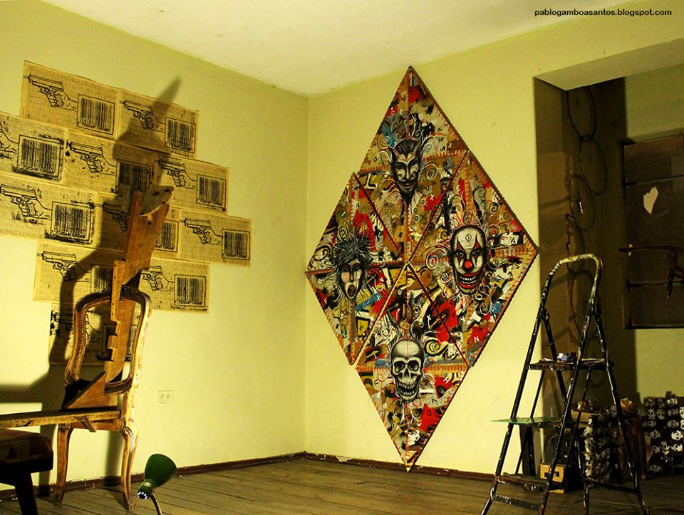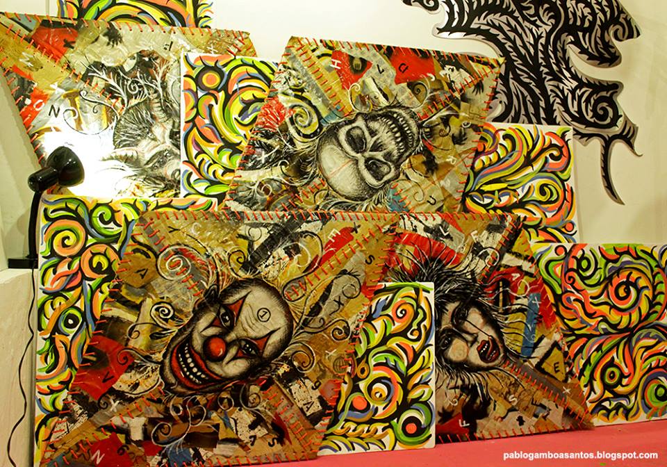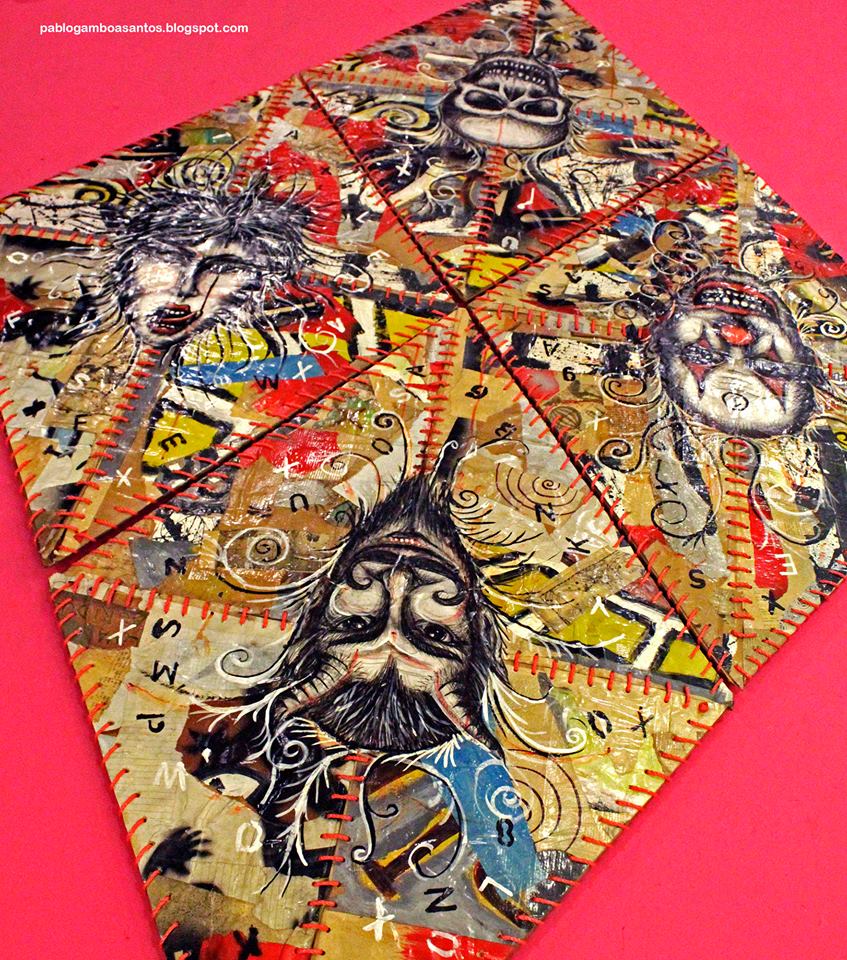 Esta serie se compone de cuatro obras muy particulares por su formato y técnica. Son #collages de aspecto amaderado en forma de diamantes. Su temática se basa en cuatro #arquetipos de la conducta humana, cada uno representado de manera simbólica a través de la máscara de un personaje. La calavera (la muerte), el payaso (el sarcasmo), el diablo (la maldad), y la prostituta (la lujuria); cada uno representa los miedos elementales del ser humano. Lo característico de esta serie es su técnica mixta. El soporte sobre el que están ejecutadas es papel reciclado proveniente de antiguos bocetos y ejercicios prácticos del artista. Son obras que han sido destrozadas y rasgadas manualmente en pequeños fragmentos formando un solo pliego. Con este material listo, Gamboa fabricó una sola plancha de papel cortada en diagonales y que unidas mediante un cosido con hilo rojo forman la figura de un rombo. Finalmente, sobre esta lámina colocó cada uno de los personajes arquetípicos que fueron previamente dibujados, pintados, recortados y pegados a manera de collage. Una vez finalizado este proceso la obra se fijó sobre una base de cartón y madera para brindarle rigidez al cuadro. El resultado final de este laborioso procedimiento es de gran efecto estético donde se fusionan armoniosamente la técnica del #collage y el #recycling. Cada obra tiene también insertos varios símbolos alfanuméricos que denotan la presencia del lenguaje dentro de la composición. La serie de los "cuatro fantásticos" es única e irrepetible ya que forma parte de una práctica experimental continua del artista.